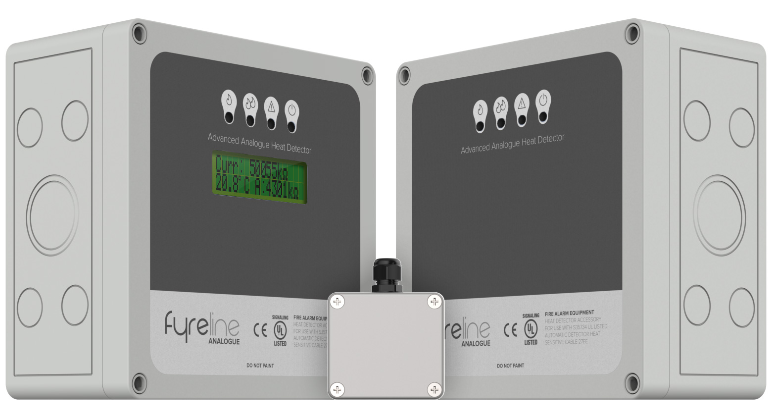 The FyreLine Analogue Heat Detector is a rugged, easy-to-install detection system, consisting of a control module and detection cable, that is designed to interface with a standard fire alarm panel or addressable monitor module.
